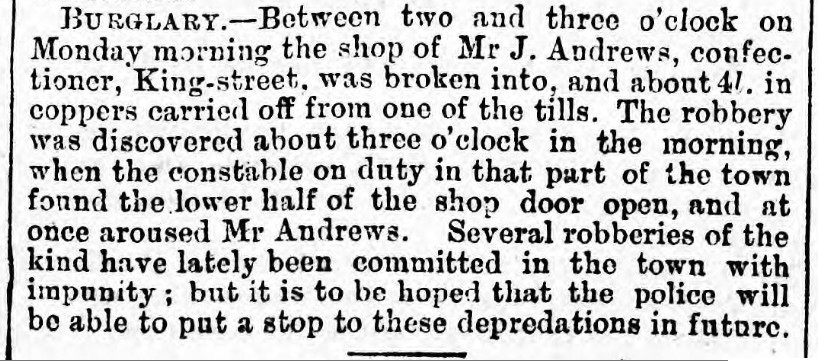 My great-great-grandfather, Jacob Andrews, appears as an 8-year-old on the 1841 census for Trowbridge, Wiltshire, England. That “yes” on the right of the first document below means he was born in the same country. However, by 1851, the Andrews family had moved to 9 King Street in Carmarthen, Wales, and the father and his oldest sons were confectioners. (Confectioners, you might already know, make candy and other treats that are irresistible and probably bad for you.)