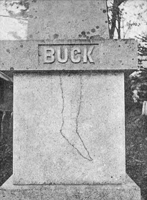 Buck might have remained a traditional local hero, but in August of 1852, his grandchildren erected a monument near his grave site. As the monument weathered, an image in the form of a woman’s leg and foot appeared under the Buck name.