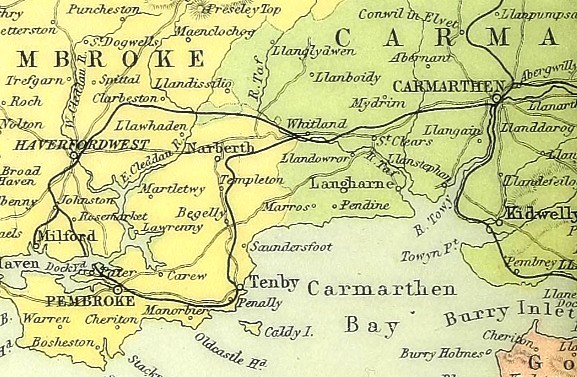 Thanks to the online newspaper archive of the Wales National Library, I found that the South Wales Railway noted by Fenton extended its line from Carmarthen west to Haverfordwest — running through the tunnel and stopping at Whitland — as 1853 came to a close. According to a reporter in that year’s December 30 issue of the Pembrokeshire Herald, the new route had opened some days earlier. Though “of momentous importance,” the event had its opposition: