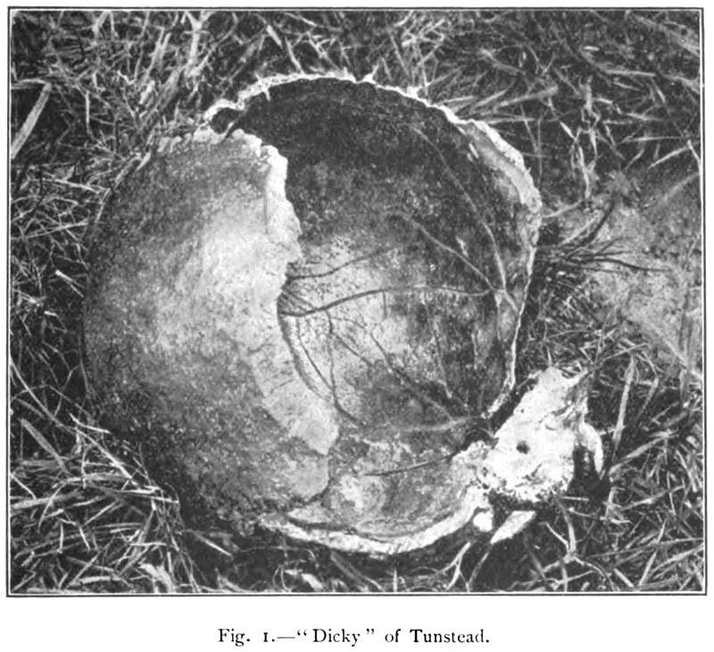 To be sure, Llewellyn Jewett’s “An Address to ‘Dickie,” one of the best written records of the folktale, was published in 1867 and includes a mention of the railroad workers’ trouble with the headstrong spirit. The same year, William Bennet shared his findings regarding the skull’s origins. He also notes the railroad encounter, suggesting that it had become a fixed part of the lore by then.